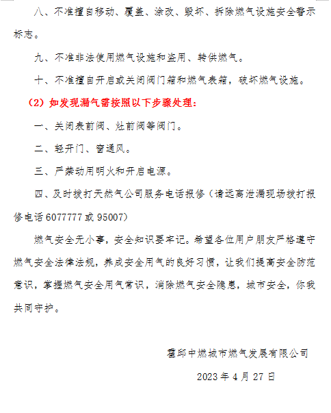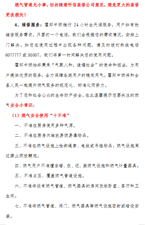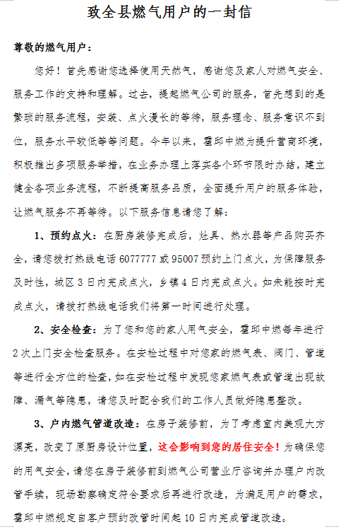 致全縣燃氣用戶的一封信