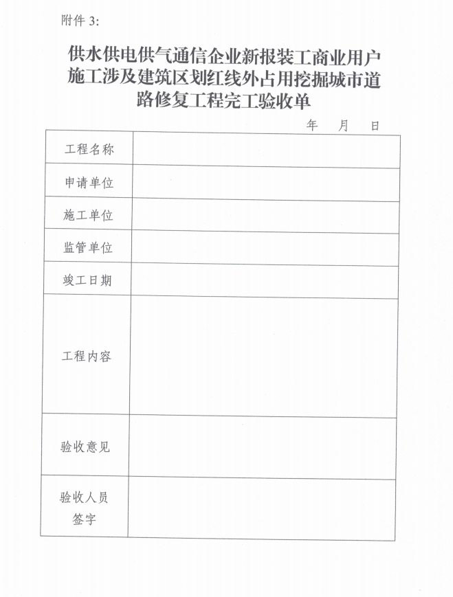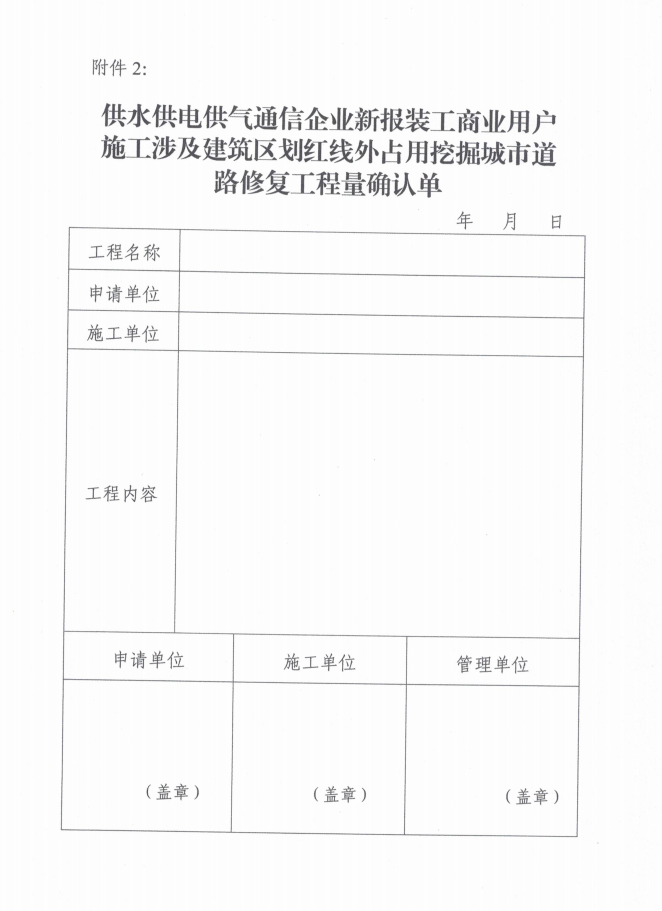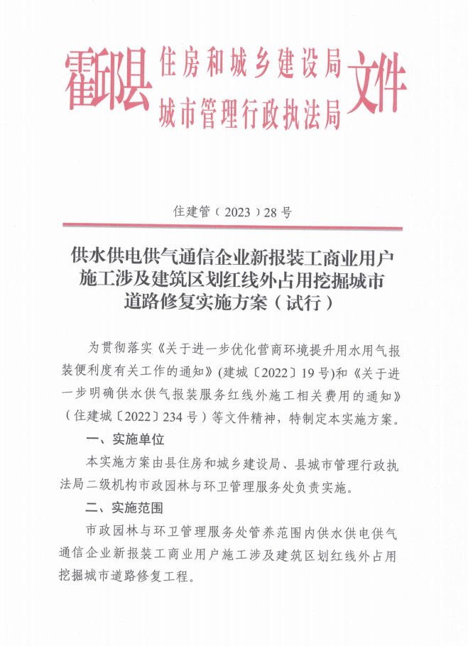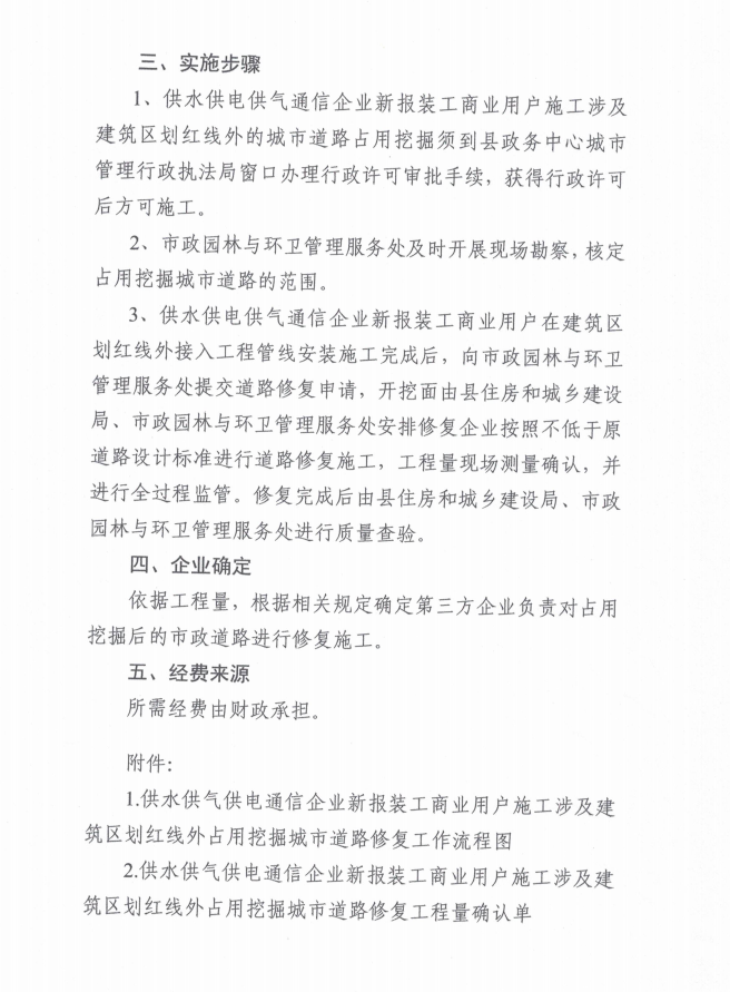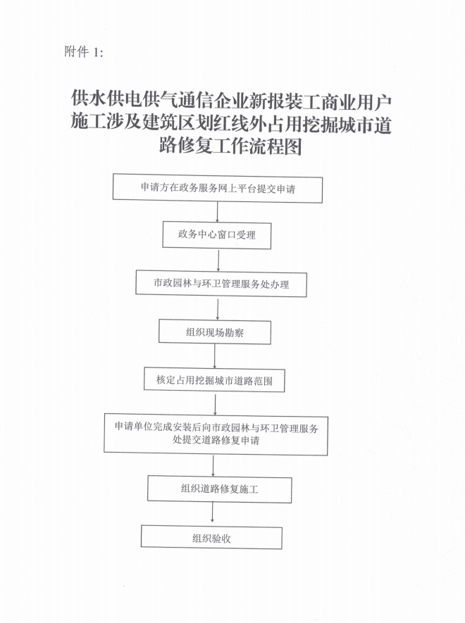 供水供電供氣通信企業(yè)新報裝工商業(yè)用戶施工涉及建筑區(qū)劃紅線外占用挖掘城市道路修復(fù)實施方案(試行)