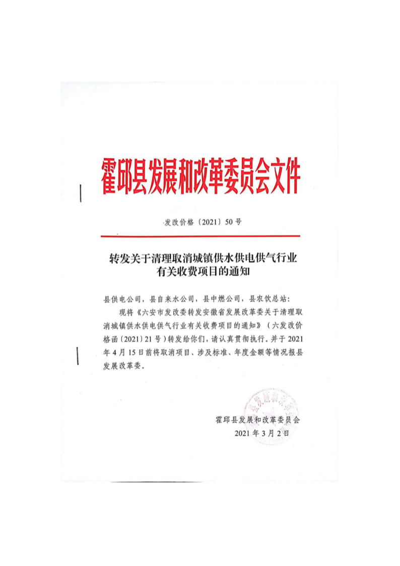 轉(zhuǎn)發(fā)關(guān)于清理取消城鎮(zhèn)供水供電供氣行業(yè)有關(guān)收費(fèi)項(xiàng)目的通知