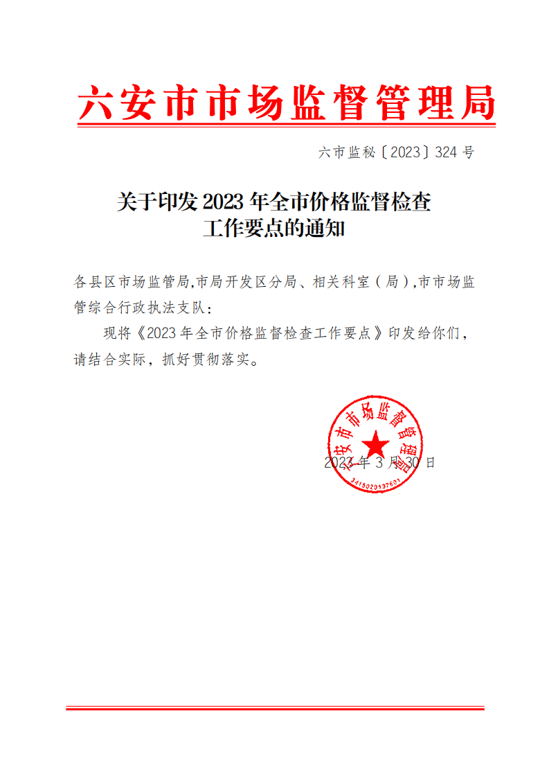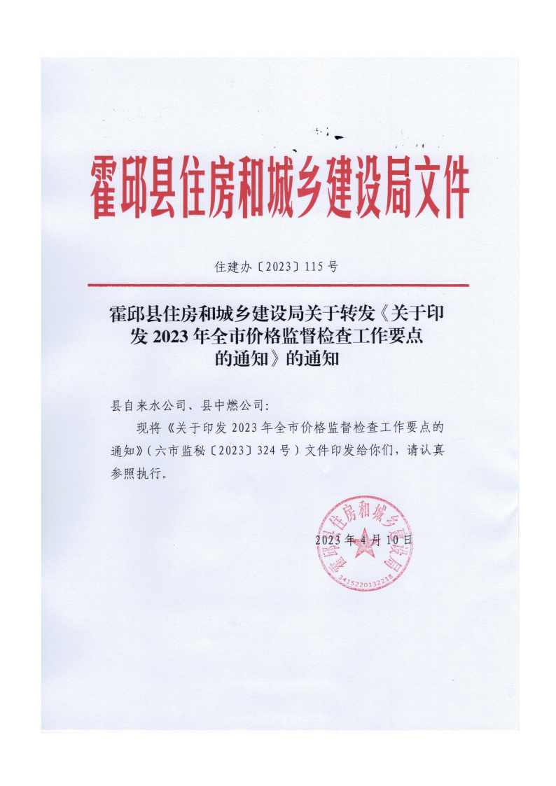 霍邱縣住房和城鄉(xiāng)建設局關于轉發(fā)《關于印發(fā)2023年全市價格監(jiān)督檢查工作要點的通知》的通知