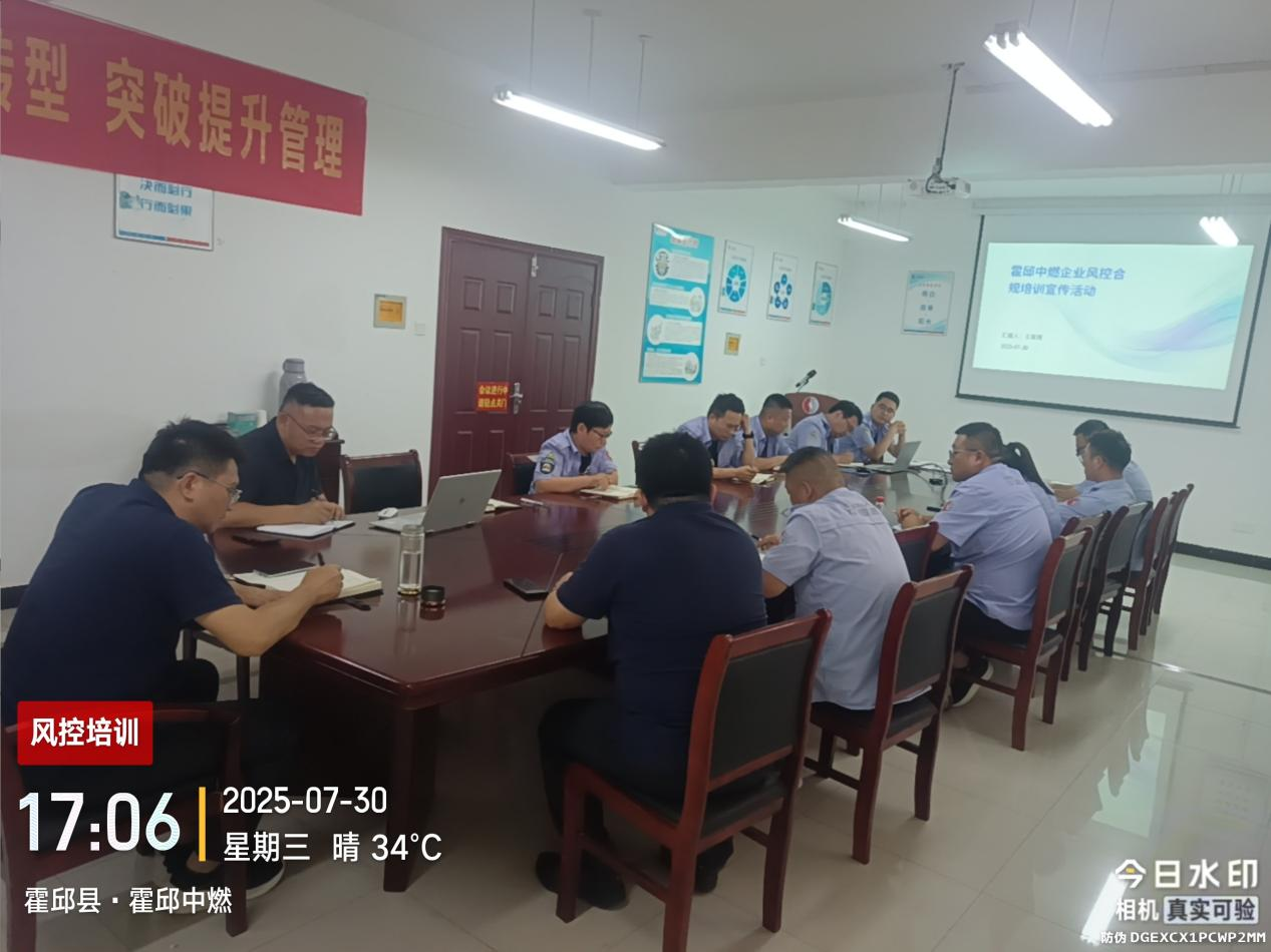 2025年7月30日,霍邱中燃組織召開(kāi)2025年度風(fēng)控合規(guī)專題培訓(xùn)會(huì)。本次培訓(xùn)以“強(qiáng)化風(fēng)控合規(guī)意識(shí),人人都是風(fēng)控員”為主題,公司主管級(jí)以上人員參加,通過(guò)案例剖析、制度解讀與情景模擬相結(jié)合的方式,全面提升全員風(fēng)險(xiǎn)防控能力,切實(shí)防范經(jīng)營(yíng)風(fēng)險(xiǎn)。