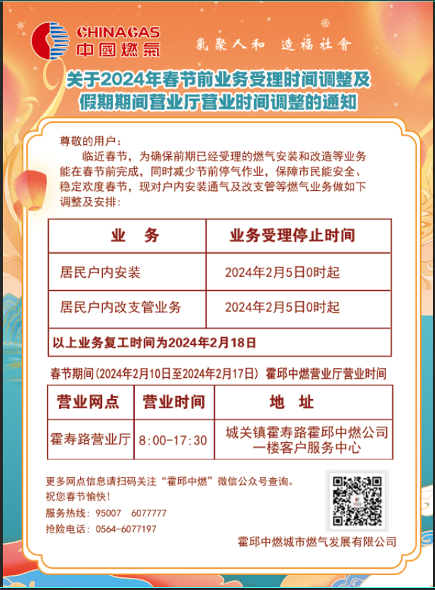 關(guān)于2024年春節(jié)前業(yè)務(wù)受理時(shí)間調(diào)整及假期期間營(yíng)業(yè)廳營(yíng)業(yè)時(shí)間調(diào)整的通知